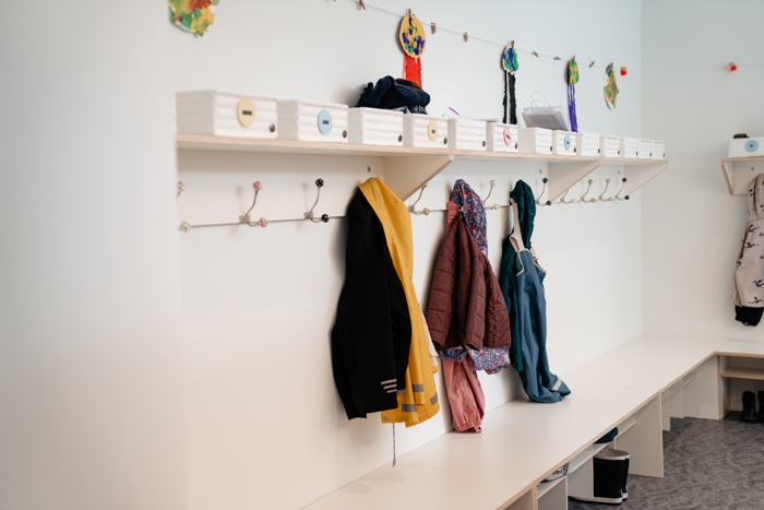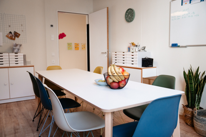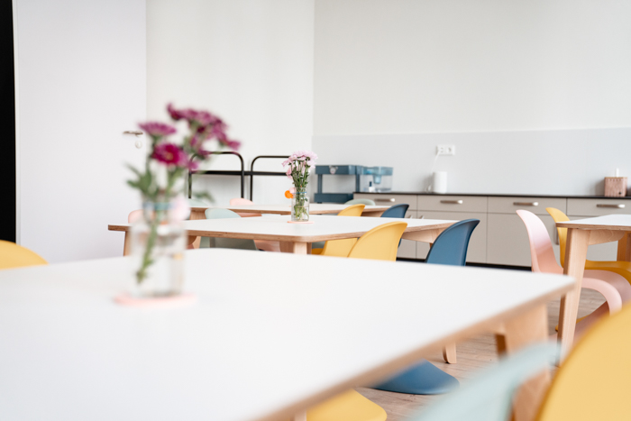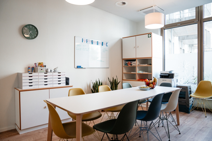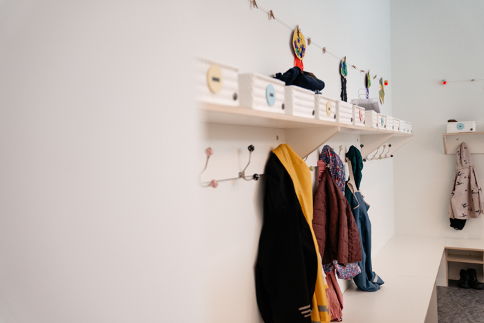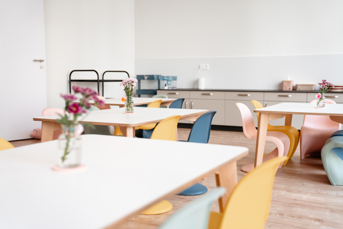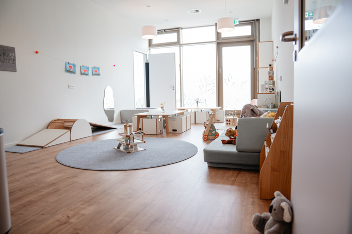 Auch der Regenerationsraum für unser Team ist vom zentralen Flur erreichbar. Das Büro der Hausleitung und einen separaten Besprechungsraum für ausgiebige Elterngespräche finden Sie leicht erreichbar im Eingangsbereich.