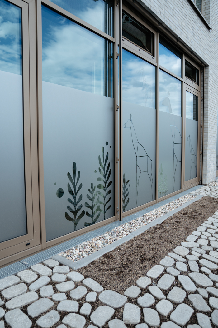 Die Kindervilla befindet sich auf einer Ebene. Vom schön gestalteten Haupteingang an der „grünen Fuge“, die die beiden Gebäudeteile der Stuttgarter Höfe verbindet, betritt man den Eingangsbereich in dem direkt die Garderobe für die Kinder untergebracht ist. Vom Eingangsbereich gelangt man in den zentralen Flur von dem die drei großzügigen Gruppenräume, die Multifunktionsräume und der Speiseraum abgehen, sowie der Zugang zum Gartenbereich.