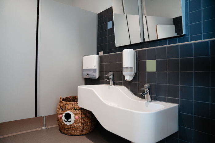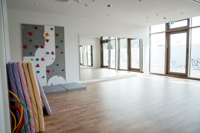 Ein direkt vom jeweiligen Gruppenraum zugängliches Badezimmer dient zur täglichen Hygiene. Ebenso direkt vom Grupperaum gelangt man in einen großzügigen Aktions-, Ruhe- und Lernraum bzw. in den Schlafraum.