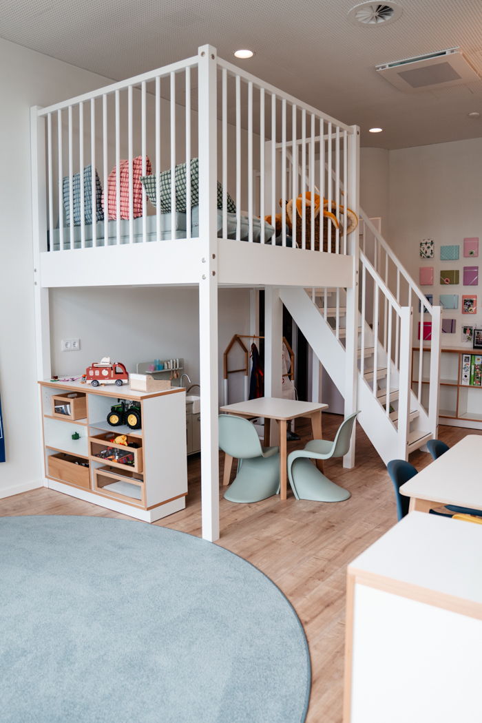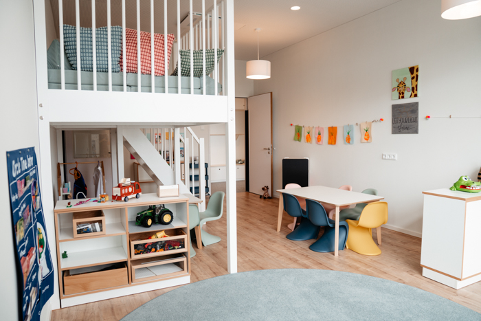 Die Kindervilla bietet Ihren Kindern über 525 Quadratmeter Eroberungsfläche im Haus und über 450 Quadratmeter außen auf der privaten Terrasse und im direkt angrenzenden, exklusiven Spielplatz im Innenhof des Gebäudes, unter freiem Himmel an der frischen Luft.